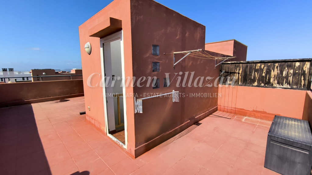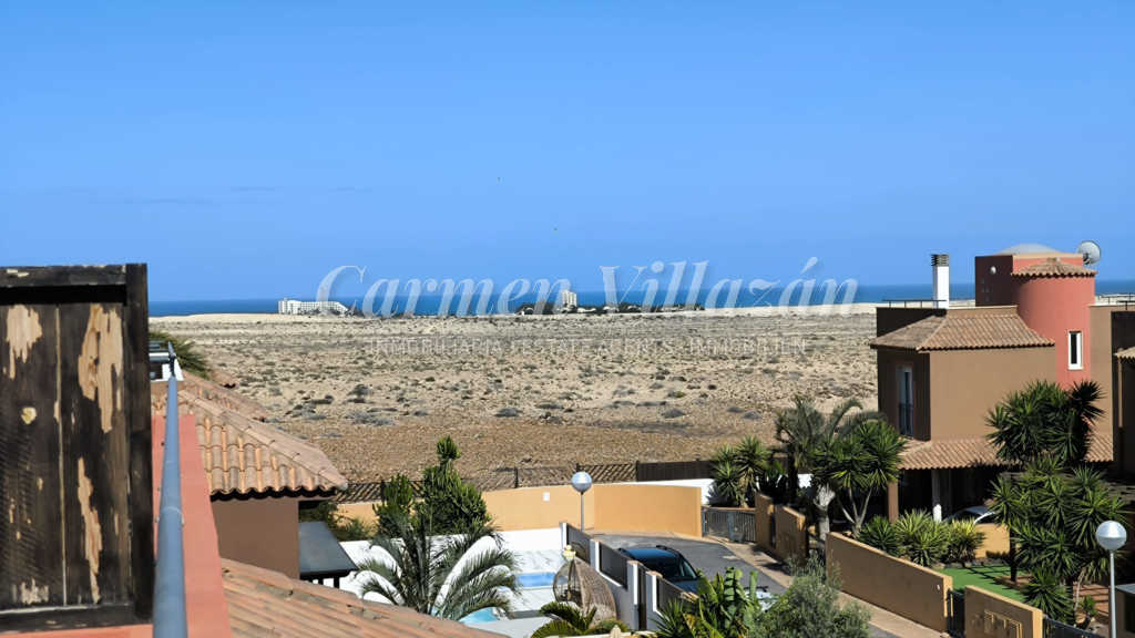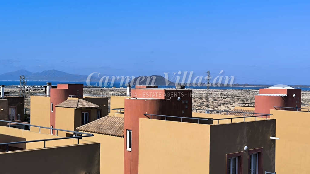 The property is completed by a private roof terrace, currently equipped with a storage shed, from where you can admire breathtaking panoramic views of Lobos Island, Lanzarote, the Atlantic Ocean and the majestic Corralejo Dunes Natural Park. A true natural spectacle within sight.