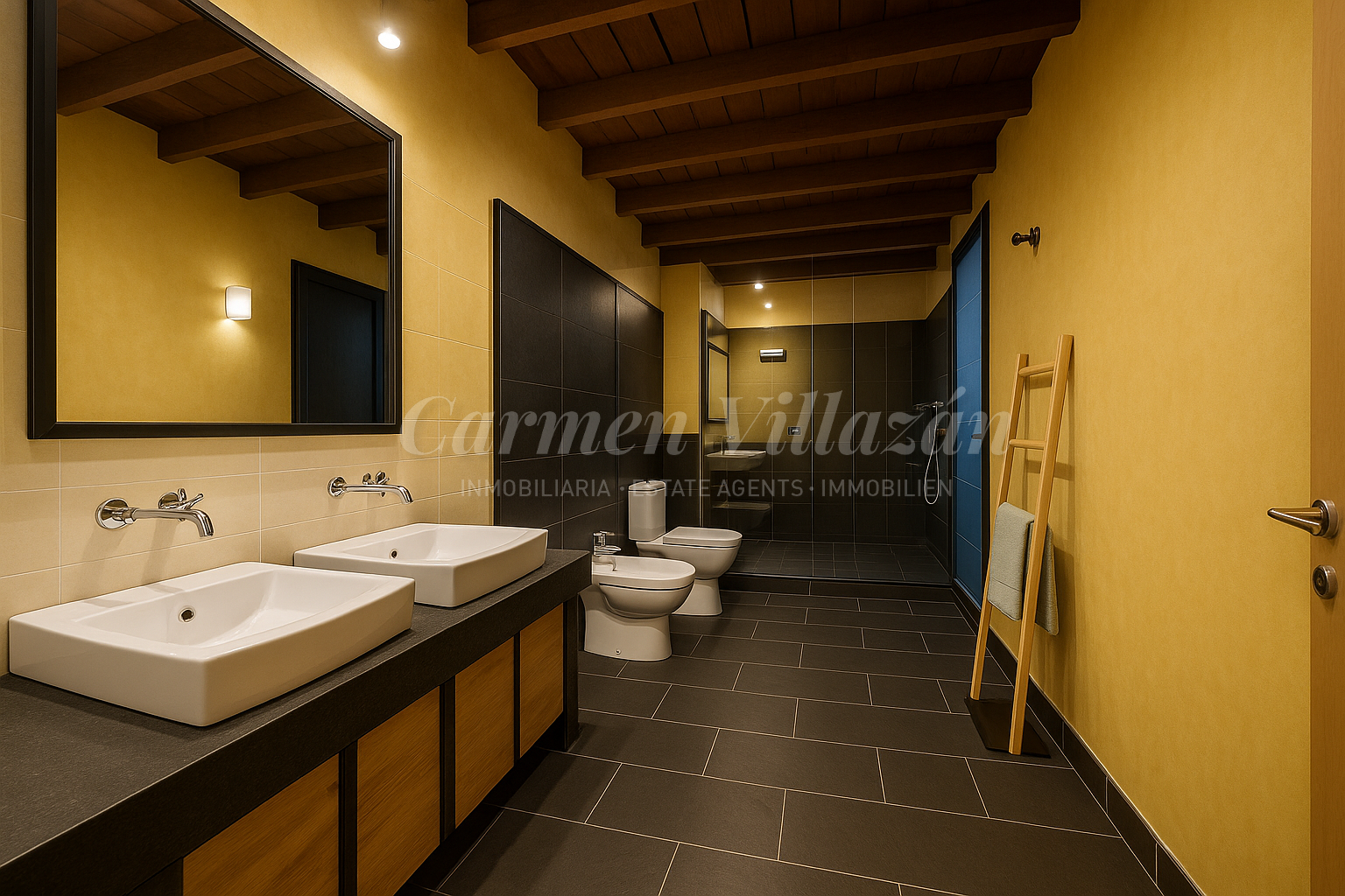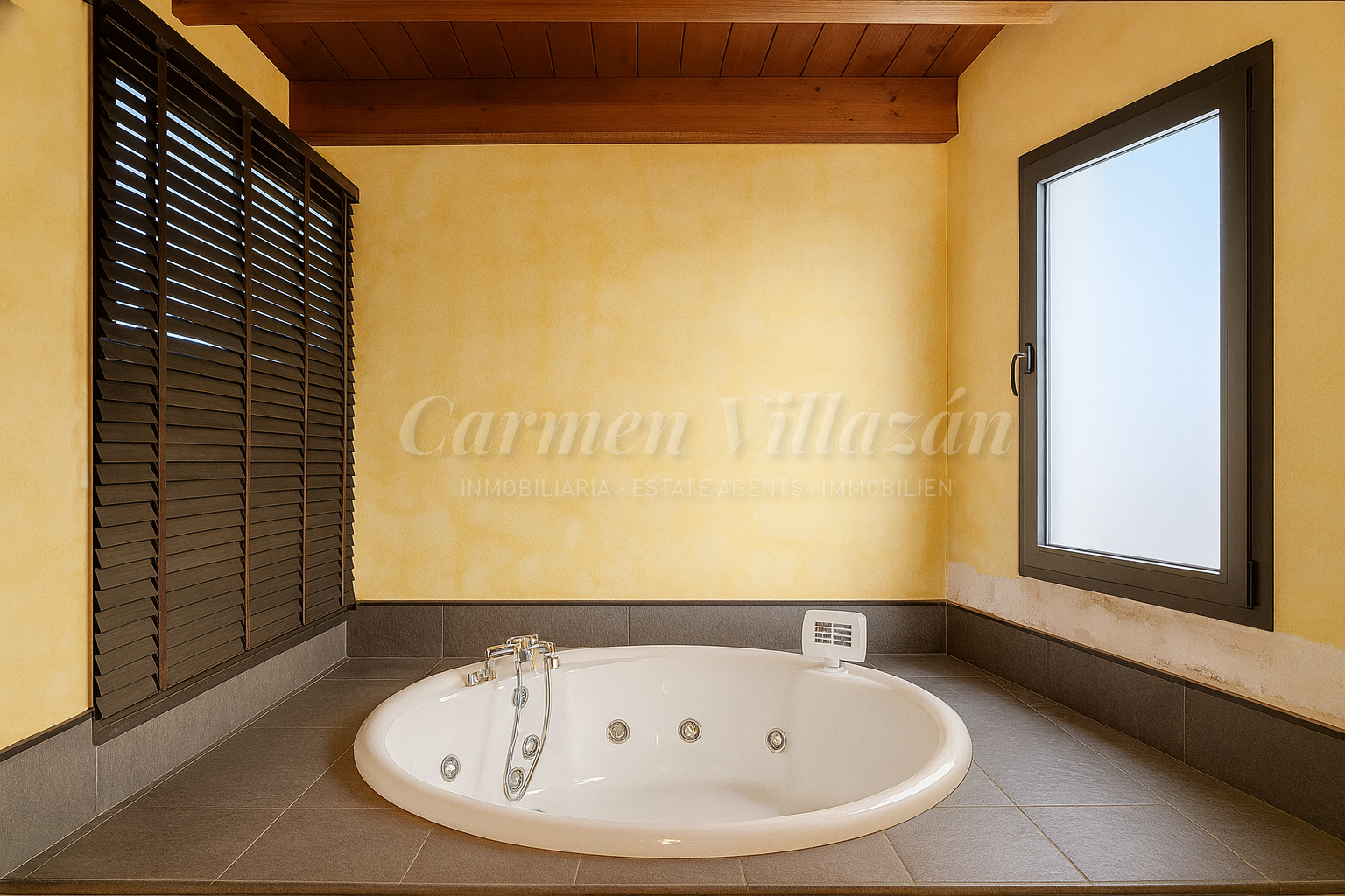 The upper floor features an impressive 40 m² studio, a bright and private space that includes its own bathroom and a jacuzzi, creating the perfect main suite, office or relaxation area. From this level, you can also enjoy the sense of openness and tranquillity that characterises the entire property.