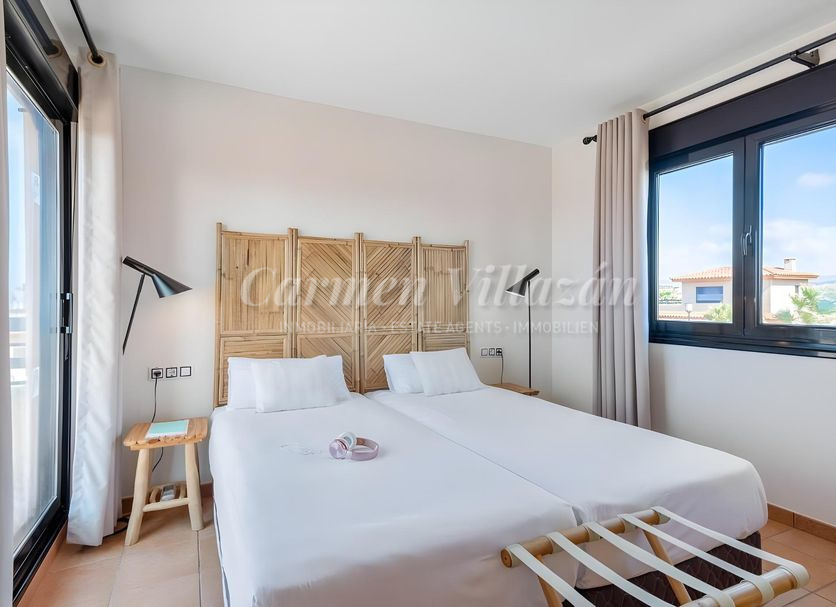 Uno de sus mayores atractivos es el magnífico espacio exterior: cada vivienda dispone de una amplia terraza que da acceso a un generoso jardín privado de aproximadamente 226,25 m², perfecto para disfrutar del clima privilegiado de la isla durante todo el año. Un entorno ideal para crear una zona chill-out, comedor exterior o simplemente relajarse en total privacidad.