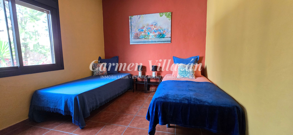 La propiedad cuenta con un total de 7 dormitorios. Cinco de ellos son dobles y todos disponen de su propio baño privado. El sexto es un dormitorio tipo estudio con cama individual y baño en suite, y el séptimo es un anexo independiente dentro de la parcela, también individual, con su propio baño y acceso a un balcón privado con vistas a los hermosos jardines.