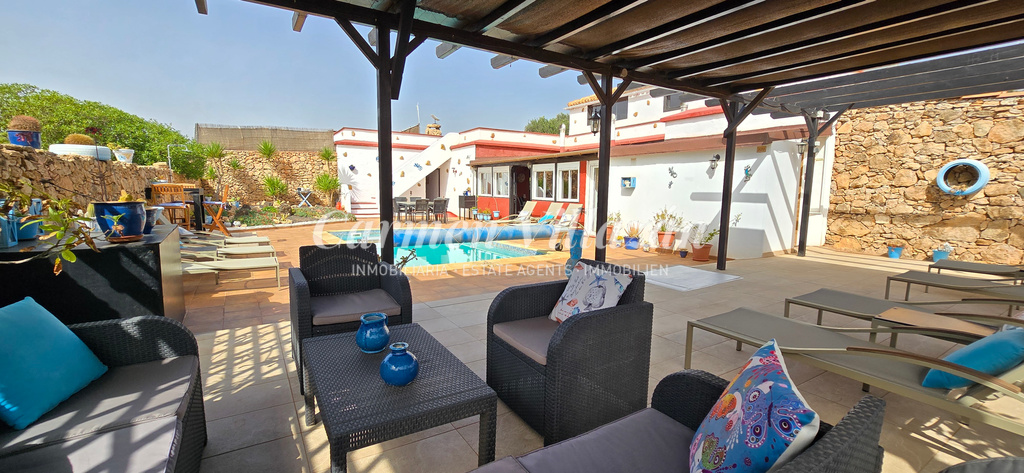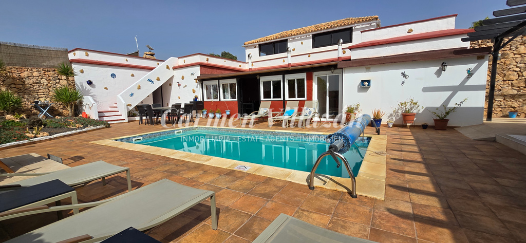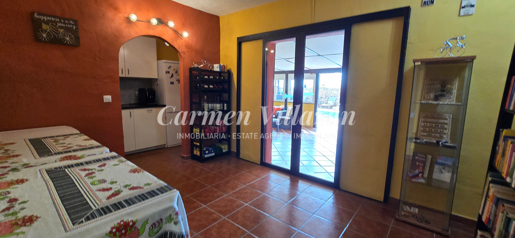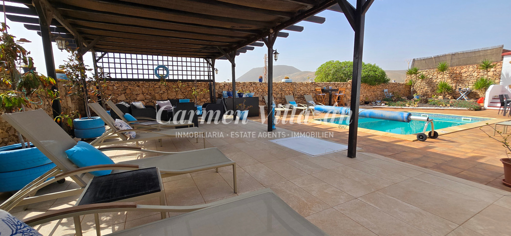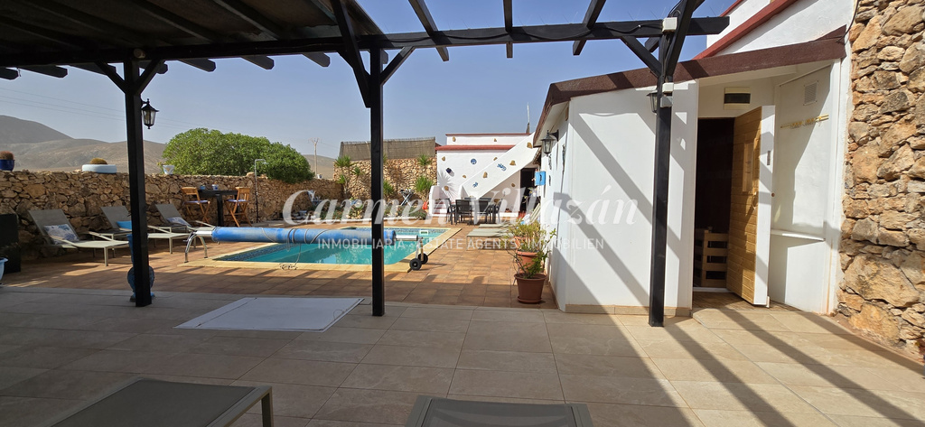 Ubicada en el pueblo de Casillas de Morales, dentro del municipio de Antigua, esta gran casa independiente de algo más de 400 m² se encuentra a solo 10 minutos en coche del pueblo de Antigua y a 20 minutos en coche del popular resort de Caleta de Fuste.