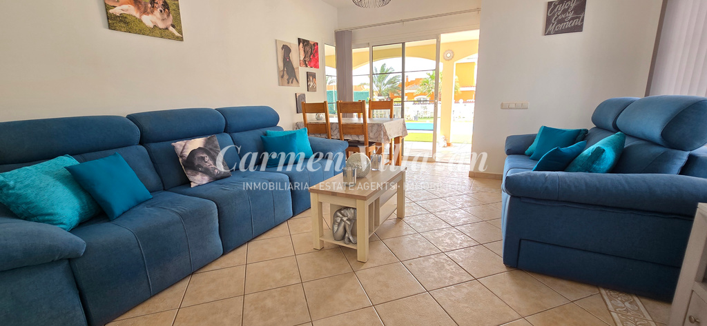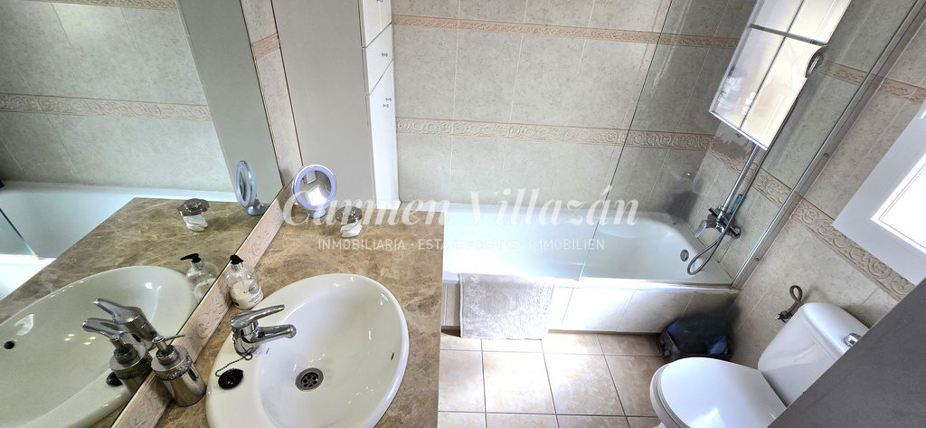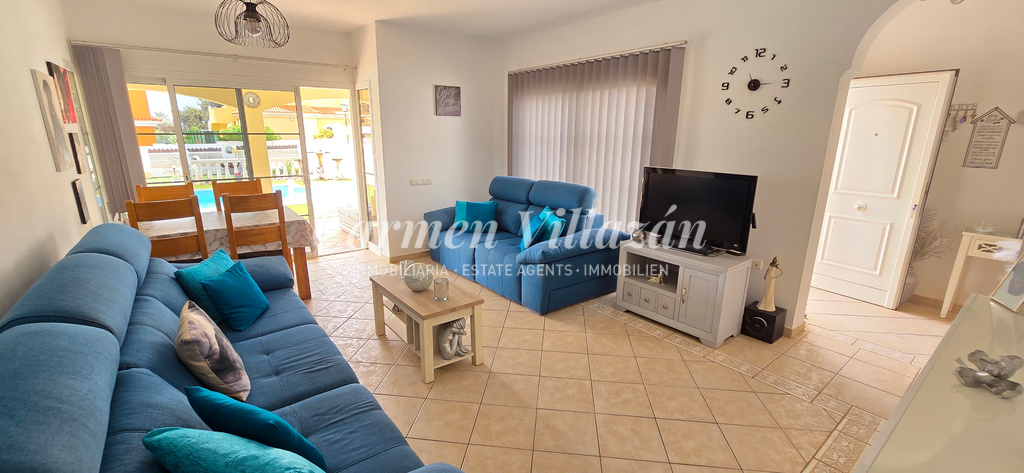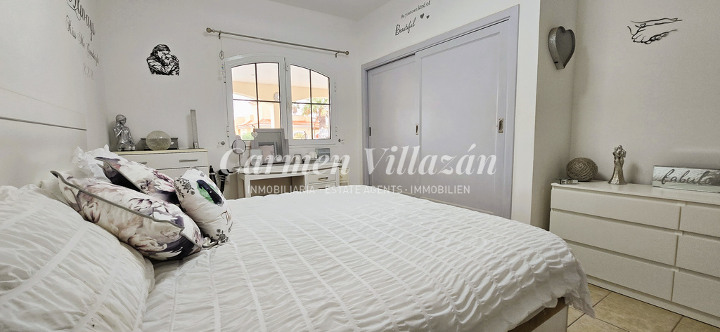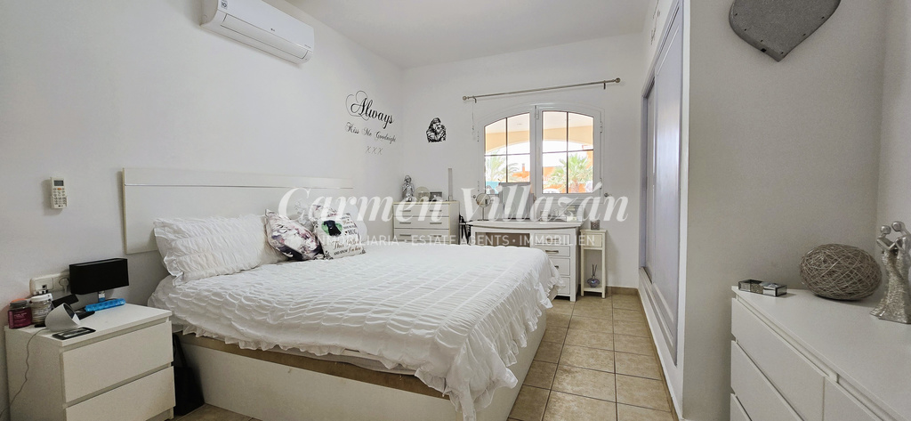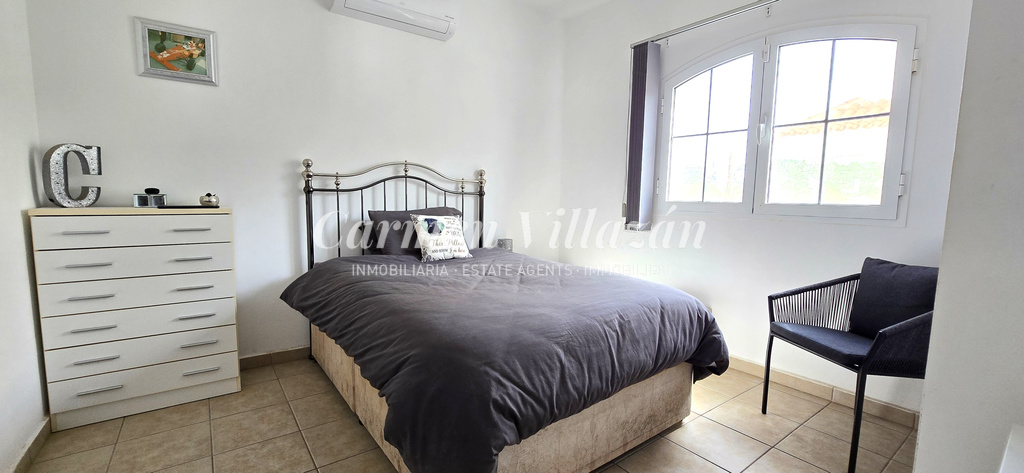 La propiedad cuenta con 3 amplios dormitorios dobles, todos equipados con armarios empotrados y aire acondicionado. El dormitorio principal dispone además de baño en suite. En total, la villa ofrece 2 baños completos, ambos con bañera.