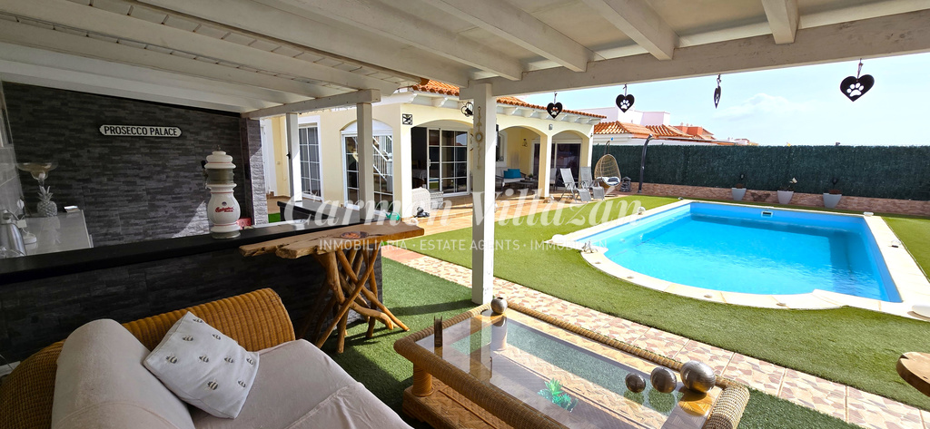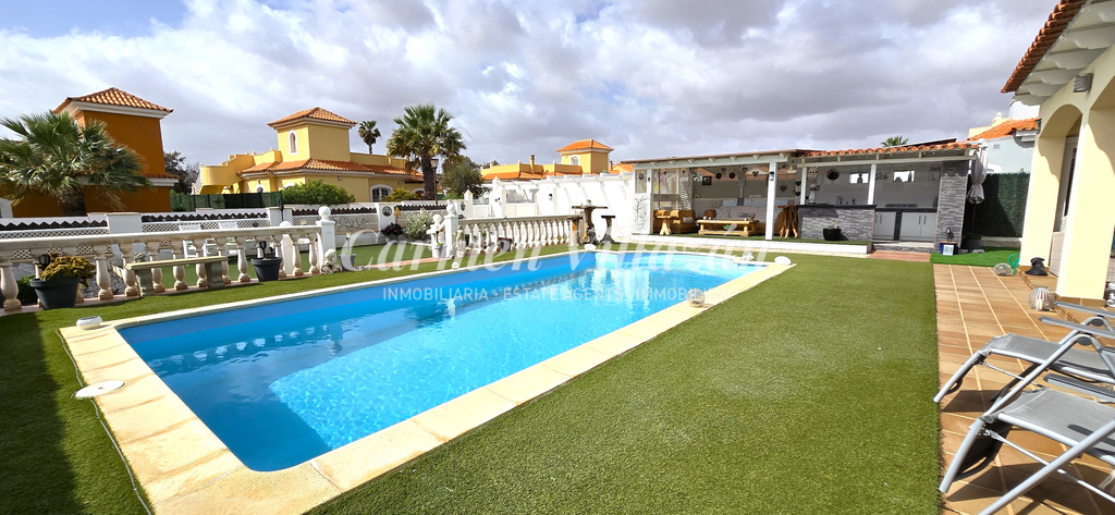 Situada en la exclusiva urbanización El Cortijo, esta espectacular villa ofrece una ubicación privilegiada a solo 10 minutos a pie del Centro Comercial Atlántico y de las hermosas playas de Caleta de Fuste.