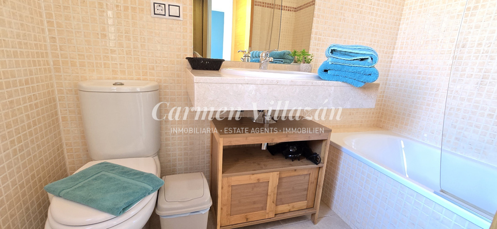 Con una superficie construida de 110 m², esta espectacular propiedad —lista para entrar a vivir— puede convertirse en la casa de sus sueños. Dispone de 3 dormitorios dobles y se vende totalmente amueblada, con un nivel de calidad excepcional. Todos los dormitorios cuentan con armarios empotrados, mientras que el dormitorio principal incorpora un vestidor y un baño en suite con bañera. En total, la vivienda ofrece 2 baños, siendo el principal equipado con una amplia ducha.