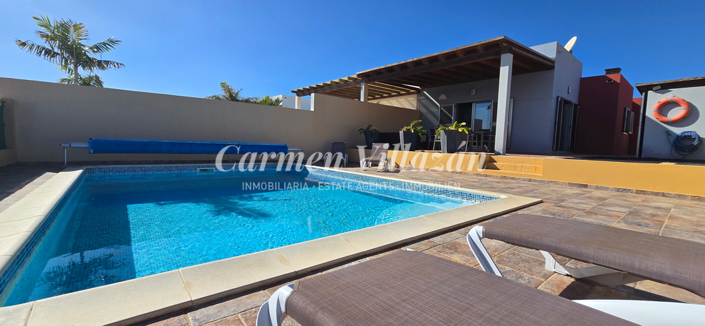 Ubicada en una de las zonas más demandadas de Caleta de Fuste, esta villa se encuentra a solo 2 minutos en coche de varias playas, del Centro Comercial Atlántico y del centro del resort, donde podrá disfrutar de una amplia oferta de ocio, restauración y servicios. Además, el "Club House" del campo de golf y un restaurante se sitúan a pocos minutos a pie, lo que añade aún más comodidad a su día a día.